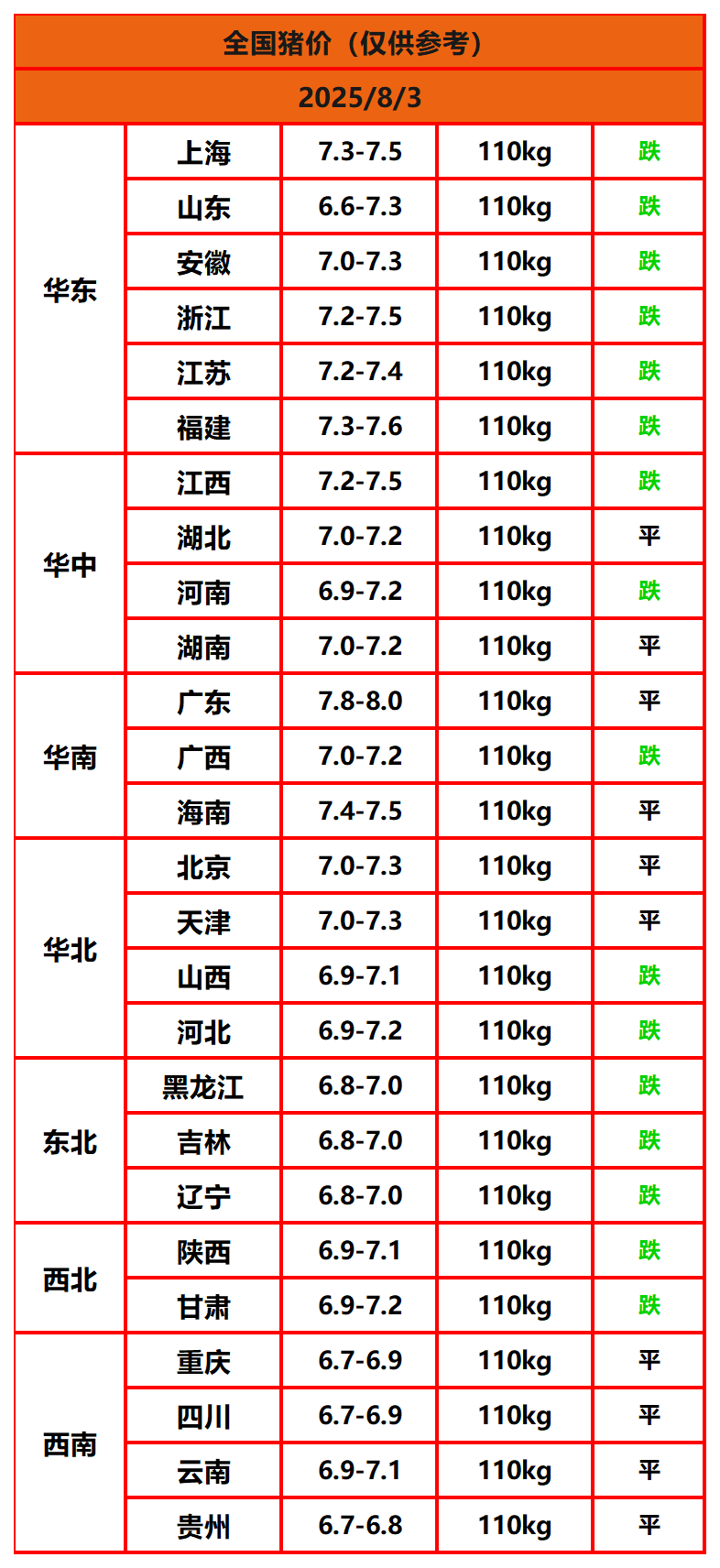 今日猪价 | 2025年8月3日全国猪价行情一览表!