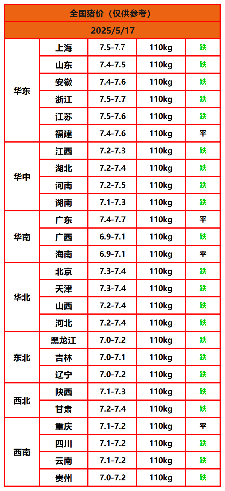 今日猪价 | 2025年5月17日全国猪价行情一览表!