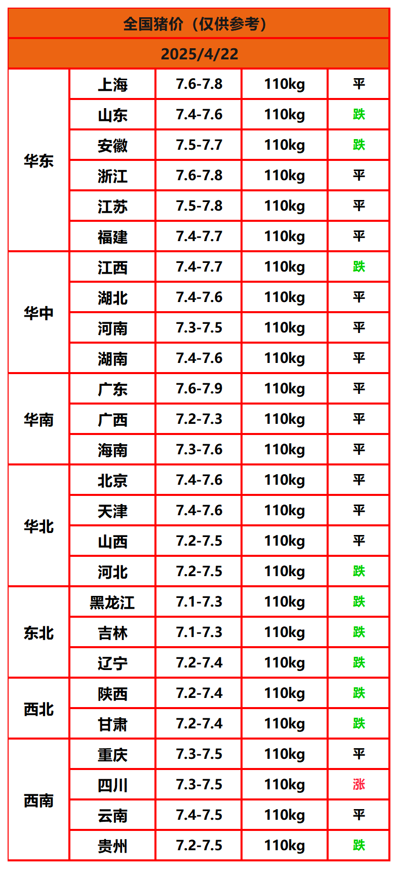 今日猪价 | 2025年4月22日全国猪价行情一览表!
