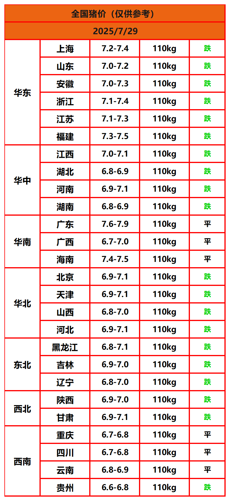 今日猪价 | 2025年7月29日全国猪价行情一览表!