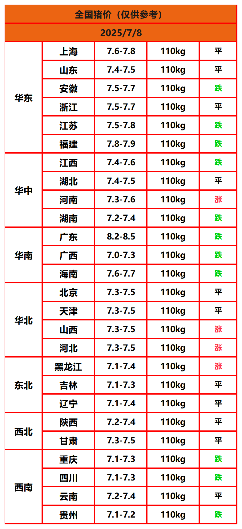 今日猪价 | 2025年7月8日全国猪价行情一览表!