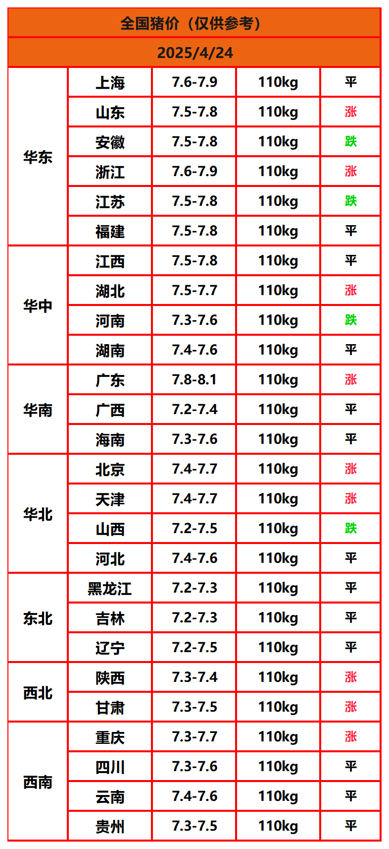 今日猪价 | 2025年4月24日全国猪价行情一览表!