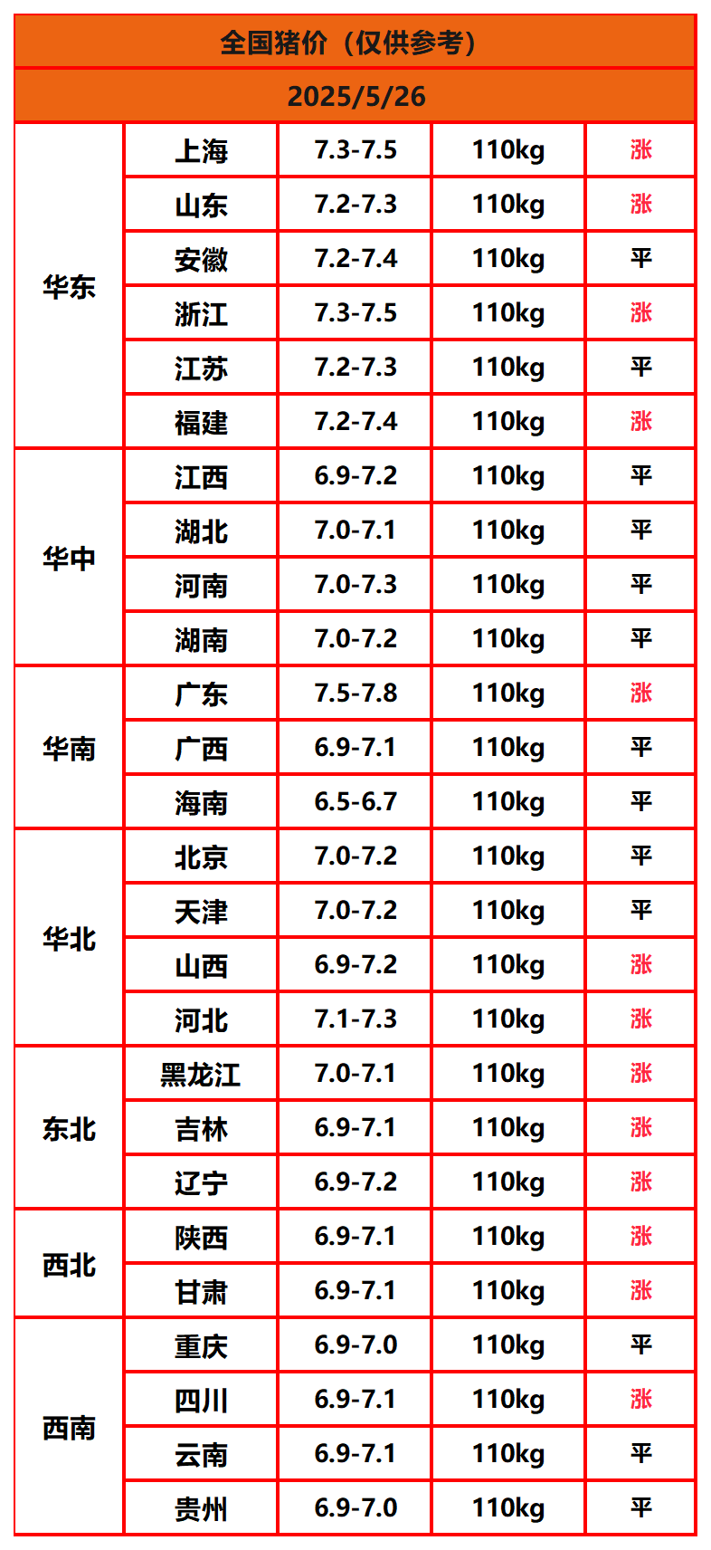 今日猪价 | 2025年5月26日全国猪价行情一览表!